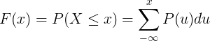 Кумулятивна функція розподілу F (x) обчислюється підсумовуванням функції масової ймовірності P (u) дискретної випадкової величини X.