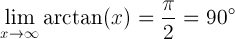 x کے آرکٹینجینٹ کی حد جب ایکس لامحدود کے قریب آرہی ہے تو pi / 2 ریڈینز یا 90 ڈگری کے برابر ہے: