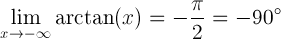 x کے آرکٹینجینٹ کی حد جب ایکس منفی انفینٹی کے قریب ہے تو -pi / 2 ریڈینز یا -90 ڈگری کے برابر ہے: