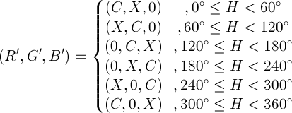 X = C ×(1-|(H / 60°)mod 2-1 |)